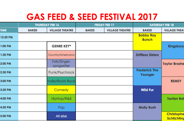 Serious music fan in eastern Iowa? Then you are looking forward with glee to the maiden voyage of the GAS Feed & Seed Festival! The Moeller Nights event will be at Baked Beer & Bread Co. and The Village Theatre this weekend (February 16-18, 2017) in the Village of East Davenport in Iowa.