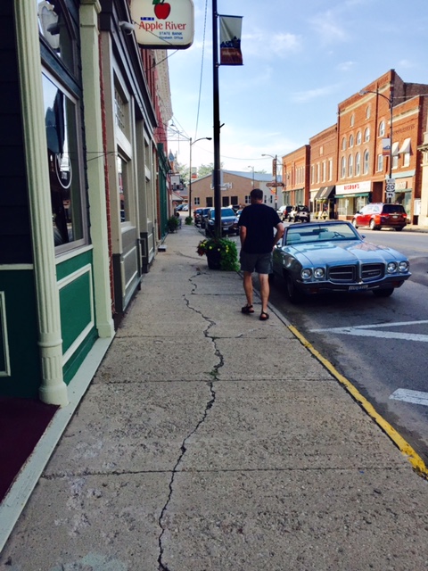 Dan strolls past a cool blue convertible in Elizabeth, IL.