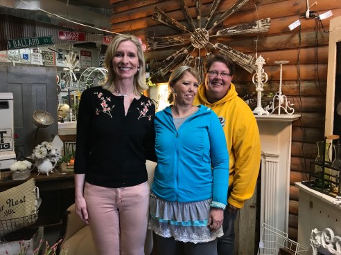 Kirsten Cooper, Robin Jennings and Ann Harms prepare for Saturday’s 4th Annual Spring Reveal at Living Vintage in DeWitt, IA.